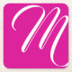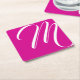 Minimalist Hot Pink And White Script Monogram Square Paper Coaster