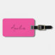 This simple personalised sturdy hot pink luggage tag has a stylish script font and can be personalised with your choice of text.