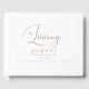 Minimalist "In Loving Memory" celebration of life, funeral guest book, elegant, lovely handwriting font, black & white.