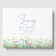 Minimalist "In Loving Memory" celebration of life, white funeral guest book, elegant, lovely handwriting font and wildflowers.