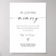 Crafted with careful consideration, the In Loving Memory Wedding Sign captures the essence of both reverence and simplicity. Its minimalist design exudes an understated elegance, allowing the focus to rest on the heartfelt sentiments it represents. The clean lines and subtle hues create a serene ambiance, serving as a gentle reminder of the enduring love that transcends time.