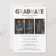 Modern Minimalist Industrial Black & White Graduation Invitation with a Textured Stencil Typography 3-Photo Linear Layout.