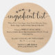 Minimalist Kraft Script Ingredient List Bakery Classic Round Sticker
