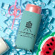 A promotional can cooler for your land surveying/mapping/development company, features black land survey icon with black customisable text on teal background .