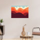 A bold minimalist landscape design in shades of red, orange, red-brown, cream and light blue