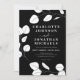 This beautiful and elegant black and white wedding invitation features a sophisticated eucalyptus leaf sprig design, with simple grey line art and delicate white leaves set against a striking black background. The modern minimalist style offers a chic, botanical touch, perfect for a classic yet trendy wedding. The easy-to-use templates are complemented by white elegant typography, adding an extra touch of sophistication. Available for both printable download and modern printed options, this unique, artist-created invitation features a minimalist greenery drawing by Catherine Sweetman, adding a stylish, personal touch to your celebration. Perfect for couples seeking a timeless, modern invitation with a botanical flair.