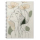 Elegant minimalist line art illustration featuring a serene woman’s face intertwined with delicate flowers. This soft botanical artwork combines neutral beige and green tones, creating a calm, modern, and feminine aesthetic. Perfect for notebooks, journals, planners, wall art, or gifts for art lovers, nature lovers, and fans of minimalist design. Ideal for everyday use or as a thoughtful, stylish present.