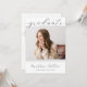 This modern minimalist graduation party invitation template, features a trendy calligraphy script font and simple lines. The classic black and white design is unique on trend style. Easily edit this online template. THE SAMPLE PHOTO IS NOT INCLUDED. REPLACE WITH YOUR OWN PHOTO BEFORE ORDERING.