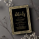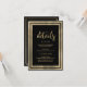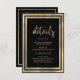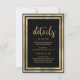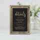 A modern minimalist luxury black and gold with elegant trendy gold handwritten typography. This glam wedding Details Card is the perfect print for any bride and groom's Wedding event. Customise this design with your details and monogram initial.