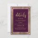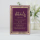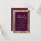 A modern minimalist luxury gold and burgundy watercolor with elegant trendy gold handwritten typography. This glam wedding Details Card is the perfect print for any bride and groom's Wedding event. Customise this design with your details and monogram initial.