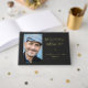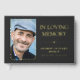 Memorial service guest book in matte black with gold foil text. In loving memory written in a standard font. The funeral guest book features a photo template where you can add your own photo of your loved one. Personalise by writing their name and years living in gold foil against a matte black background.