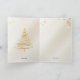 This elegant card features a stunning, minimalist line-art Christmas tree in shimmering gold, topped with a delicate star, set against a soft, creamy background. Crisp white and silver snowflakes frame the design, adding a touch of winter sophistication.