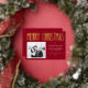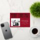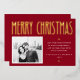 Christmas foil photo greeting card with single photo template, custom name flanked by stars and retro text "Merry Christmas” in real foil. Deep red or custom color background.