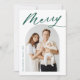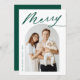 Minimalist Merry Green Script Arch Photo Holiday Card