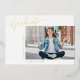 This silver foil, elegant yet minimalist graduation announcement card, features design elements of modern text fused with calligraphy script. The front of the card text is in real foil with your choice of gold, silver or rose. The graduates horizontal photo is artfully placed on the front of the card while the back of the card offers personalised text spaces for information about the graduation and future journey. To see more items like this, visit my store here at "www.Zazzle.com/LakeViewCardCo". Thanks