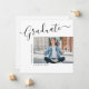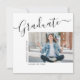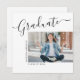 This elegant yet minimalist square, graduation announcement card, features design elements of modern text fused with calligraphy script. The graduates horizontal photo is artfully placed on the front of the card while the back of the card offers personalised text spaces for information about the graduation and future journey. To see more items like this, visit my store here at "www.Zazzle.com/LakeViewCardCo". Thanks