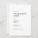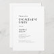This minimalist modern art deco engagement party presents both an elegant, black tie formal, and a casual, simple design for a traditional or more rustic engagement celebration. The plain, neutral black and white layout with unique, classic typography alludes to minimal boho or classy retro making it a perfect design for any event theme.