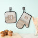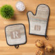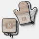 Minimalist Modern Beige Marble Initial Monogram Oven Mitt & Pot Holder Set