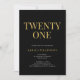 Modern minimalist 21st birthday party invitation features stylish gold text saying Twenty One and your party details in classic serif font on black background colour, simple and elegant, great surprise adult milestone birthday invitation for men and women. The black background colour can be changed to any colour of your choice.