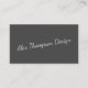 This sleek business card design features a deep charcoal black backdrop with an elegant handwritten-style name displayed on a stylish diagonal. Perfect for creatives, freelancers, and boutique brands, it offers a modern yet approachable look that’s both minimal and memorable.