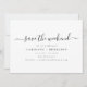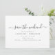 This save the weekend card features elegant script lettering and a clean minimalist layout for announcing a wedding weekend celebration. Perfect for destination weddings or multi-day events where guests should reserve the full weekend. The modern typography keeps the focus on the couple’s names, date, and location. A simple and stylish way to share wedding plans and direct guests to the website for details.