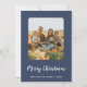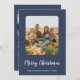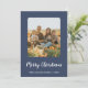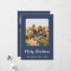This minimalist modern blue 3 photo Merry Christmas newsletter holiday card is perfect for an elegant holiday greeting card. The simple minimal design features classic white calligraphy with a rustic blue setting for your family photos. You can personalise the card with three of your photos, one on the front of the card and two on the back. Add your family name and year on the front, and your year in review note on the back, for a festive custom holiday card.