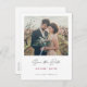 This simply chic modern photo wedding save the date postcard has a crisp, fresh minimalist design. The front features a lively modern Save the Date text in black below your photo and your first names and date and wedding location below that. This 'save the date' script can't be altered. But you can change the colour, size and font of any of the other text on either side. We've highlighted the names text with an elegant shade of burgundy and the default text colour for other text on the front is black. The default colour for the text on back is a dark grey tone that's mostly black. You might choose to remove some text on back, and perhaps replace it with a different type of message of your choice. On the back we chose an atypical order for the information, putting the 'save the date' text after the 'for the wedding of' text, which lends a path less travelled charm to it. You can alter this by changing the text in each of these text fields and entering by hand the part you want to place in the order you want to show it. We've also chosen to use lower case for some text on back that is typically upper case, but when you edit to show your own details you can of course change the case as well if you prefer a more standard look. In any case, please do remember to remove all of our sample details, including the website info on the bottom on the back side! The default setting on both sides is a transparent background to let the colour of the paper simply serve as the base tone. You can change this by choosing a background colour for one or both sides if you prefer a different look. The default paper type is matte but you can change this to semi-gloss. Use the intuitive design tools, your favourite photo and your inspiration to make this simple, modern custom wedding save the date postcard uniquely yours!