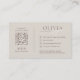Elevate your brand's presence with this elegant and customisable business card design, featuring a soft, neutral taupe background that exudes understated sophistication. Your name takes centre stage in a bold, clean font, beautifully complemented by a flowing script for your service or speciality. The reverse side offers comprehensive contact information, including a convenient QR code and social media links, all presented with a minimalist yet impactful layout for a truly refined impression.