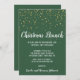 This minimalist modern|green christmas brunch invitation is perfect for a classy Christmas or holiday brunch celebration. The design features festive gold confetti with elegant white calligraphy on a green background.