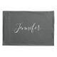 Both sides are modern designed with a customisable dark grey background and personalised with name in white trendy handwriting script letters. Click personalise template option and follow the prompt.