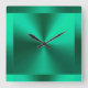Minimalist Modern MetallicGreen Clock. Shiny metal look gradient in a cool hued shade of emerald green. Simple and elegant decor for your home design.