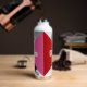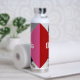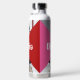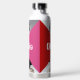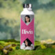 Minimalist, Modern Photo Collage Personalised Water Bottle with pink and red solid backgrounds. Upload your very own photos (4 total) and add your name or initials.