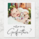 Simple, elegant and stylish black and white Godfather proposal wine bottle labels. Design features single photo of the baby and ''will you be my Godfather'' in trendy handwritten lettering.