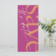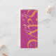These 4" x 9" save the date cards feature a minimalist design in vibrant orange and cream letters on a magenta background with placeholders on the back for the engaged couple names, wedding date, and venue information and your favourite photo!