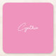 Minimalist Modern Plain Calligraphy Add Name Pink Square Paper Coaster