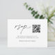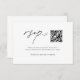 Keep your wedding planning stress-free with this Minimalist Modern QR Code RSVP Card. Featuring chic calligraphy and a clean black-and-white layout, this card makes responding effortless—guests can simply scan the QR code to RSVP online. Perfect for modern couples who want an elegant yet practical solution, this design blends timeless style with digital convenience. Pair it with matching invitations, details cards, menus, and thank you notes for a seamless wedding stationery suite.
