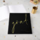 Minimalist Modern Script Grad Graduation Black. Simple elegance, Grad is in an elegant set script, and the rest of the text on the front, back and spine you can easily personalise. All the words are printed in real foil in your choice of gold, rose gold or silver for a glam luxury touch.
