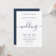 Minimalist Modern Script Navy Blue Wedding Invitation