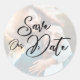 Minimalist Modern Script Typography Save Our Date Classic Round Sticker