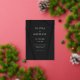 These uber minimalist modern 5"x7" wedding invitations features a sleek silver foil line design on a black background with placeholders for the wedding couple first names, date, time, venue, venue address and reception.