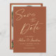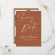 This stylish and trendy Minimalist Modern Simple Boho Photo Save the Date card seamlessly blends simplicity with boho charm, creating the perfect introduction to your upcoming celebration. Featuring terracotta colour palette and calligraphy script typography, this wedding save the date exudes a contemporary vibe that stands out. The simplicity of the design allows your chosen photo to take centre stage, adding a personal touch to the announcement. Share the excitement of your upcoming event with a save the date that perfectly conveys class and elegance, all while keeping it simple and effortlessly stylish.