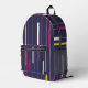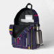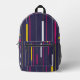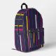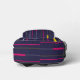 Embrace bold sophistication with minimalist, mid-century-inspired stripes in hot pink, white, and yellow on a deep navy background.