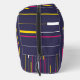 Embrace bold sophistication with minimalist, mid-century-inspired stripes in hot pink, white, and yellow on a deep navy background.