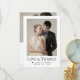 The clean layout showcases your wedding photo on the front with your names and wedding date, while the back includes space for a heartfelt message of appreciation. The refined black-and-white design makes this card perfect for classic, formal, and contemporary weddings.