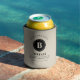 Minimalist monogram can cooler in simple black and beige, with modern typography style. Personalize with dad's initial, name, a short greeting, kids names, and year of gifting. Perfect for Father's Day gift or birthday gift for Dad.