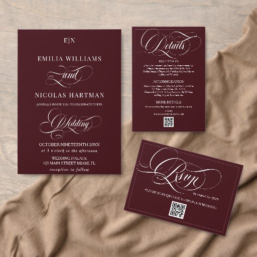 Burgundy Baroque Calligraphy WeddingDesigned by Tsikona M