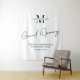 Add a backdrop to your business launch event with this minimalist black and white grand opening event tapestry design. Featuring a simple monogram design with space for your company initials or logo, just add your tag line and event date to make branded backdrop for your business opening party.