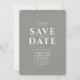 A minimalist green sage / light green save the date card with no picture and a greenery hand drawn illustration, featuring a combination of bold and script fonts for chic look, on the back a monogram and QR code for your website or registry. If you need matching pieces that are not in the collection, please let me know (Maria) Happy to help!