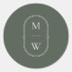 Minimalist Monogram Moss Green Wedding Classic Round Sticker