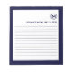 A modern minimalist lined notepad in navy blue and white. Custom monogram initial and name on a simple white background, framed by a navy blue border. Personalise using the fields provided or use the 'message' button to contact the designer for help.